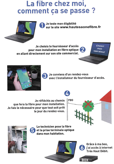 Pour les autres communes de la CCPH, le déploiement est assuré par HAUTE SAÔNE FIBRE. Il est déjà en cours sur certaines communes et tous les foyers seront raccordés en 2022 et 2023.