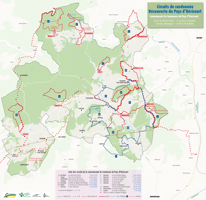 La CCPH, en partenariat avec le club de randonnée des SGH d’Héricourt, vous propose 15 circuits aux niveaux de difficultés variables pour des promenades familiales ou sportives.